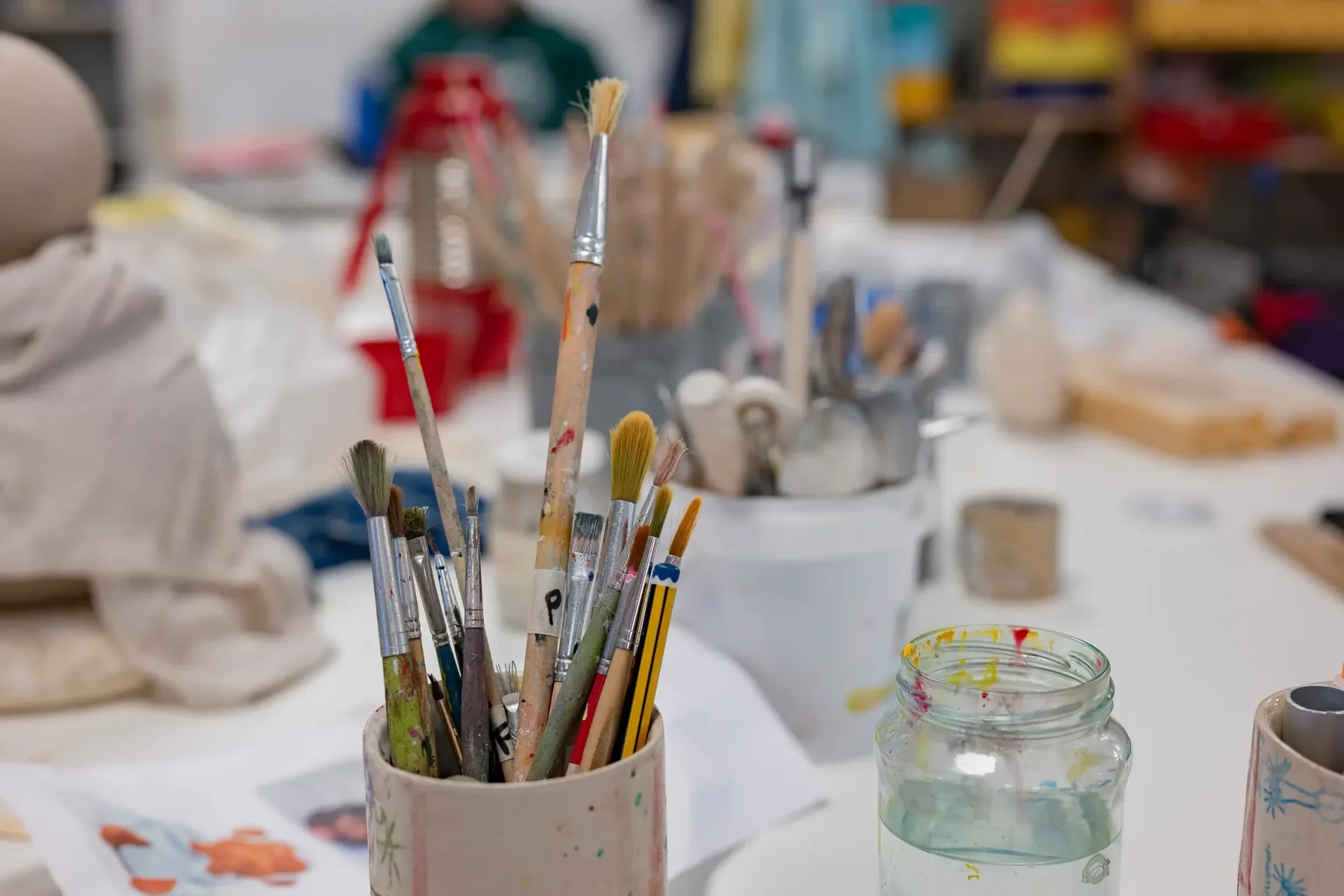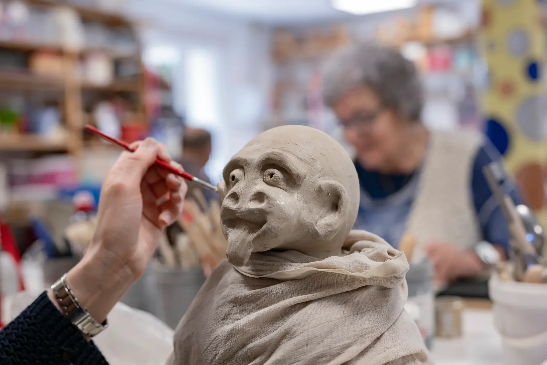 In der Tagesstätte Gerlafingen stehen handwerkliches und gestalterisches Arbeiten im Mittelpunkt. Die Teilnehmenden arbeiten mit Ton, Glas, Holz, Papier, Beton und vielen weiteren Werkstoffen. Mit unterschiedlichen Techniken entstehen individuelle Kunst- und Gebrauchsobjekte – farbenfroh, sorgfältig gearbeitet und mit viel Liebe zum Detail.